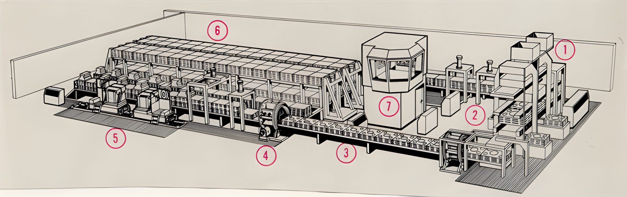 Figur 29. Flaskformningsline (SKF Mekan AB).1. Formmaskiner