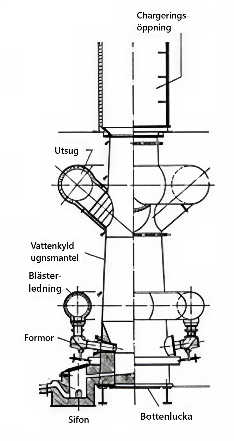 Figur 13. Uppbyggnad av en kupolugn.