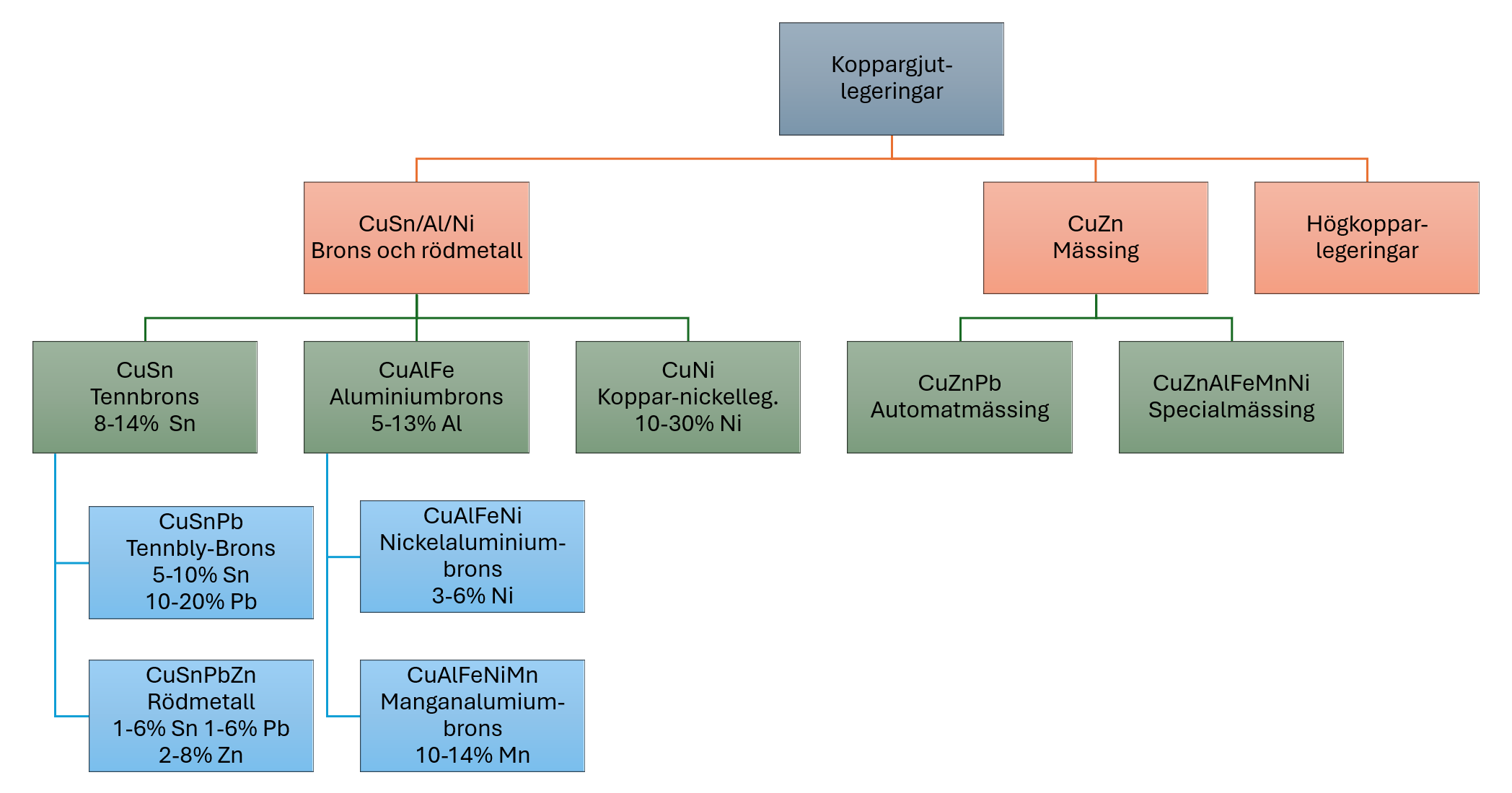 Figur 76. Översikt över koppargjutlegeringar.