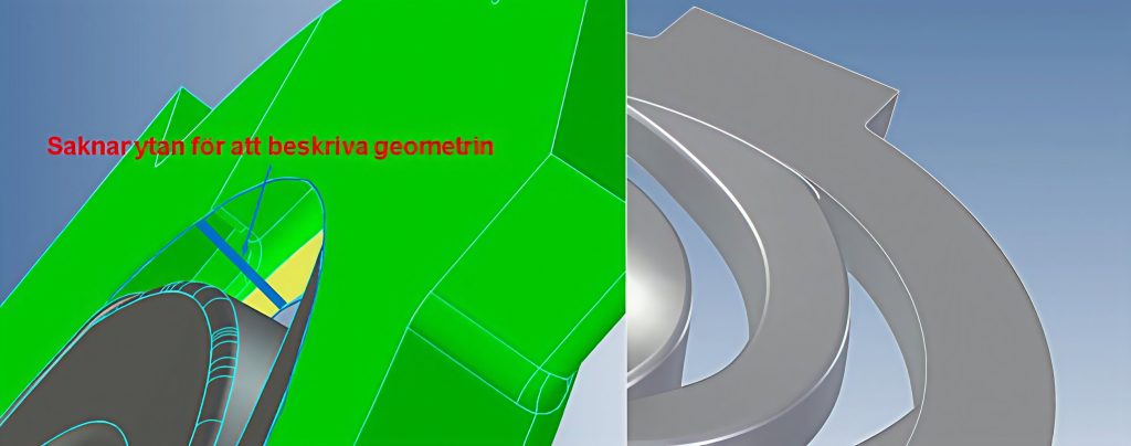 Helst ska filen vara från ett CAD-program med solidmodellering då de normalt är bättre på att beskriva geometrin i jämförelse med CAD-program som arbetar med ytmodellering, se figuren nedan.