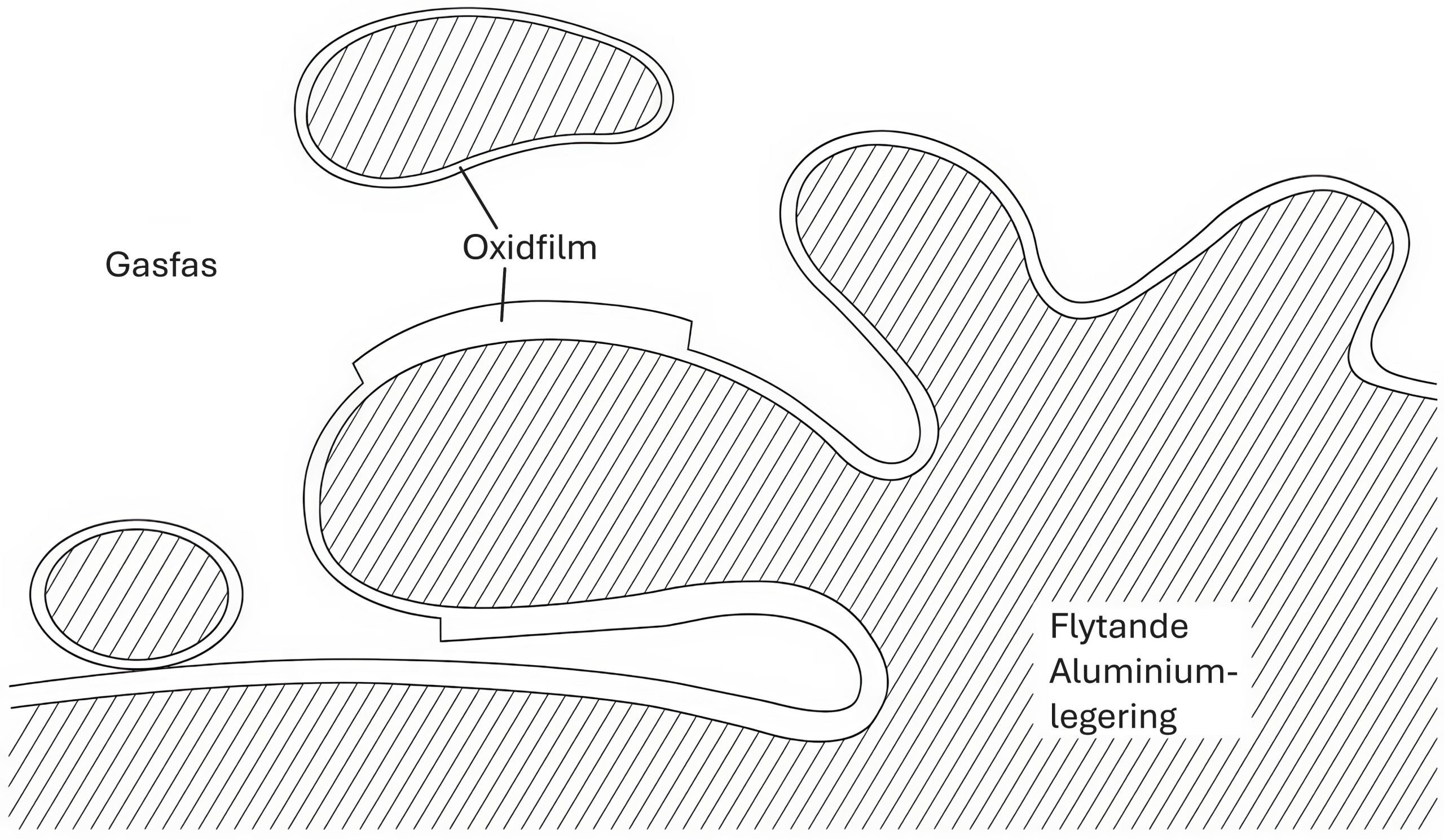Figur 17. Plask i gjutsystemet bryter smältfronten och kan ge oxidinneslutningar.