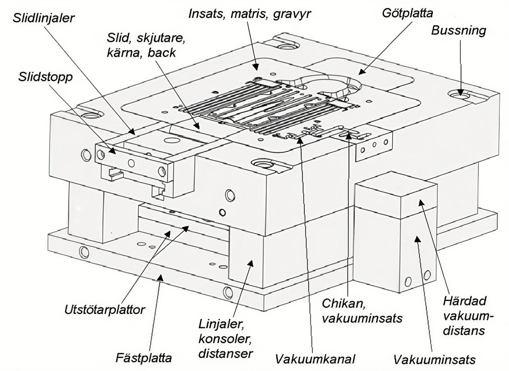 Figur 41. Den kompletta uppbyggnaden av ett pressgjutverktyg.